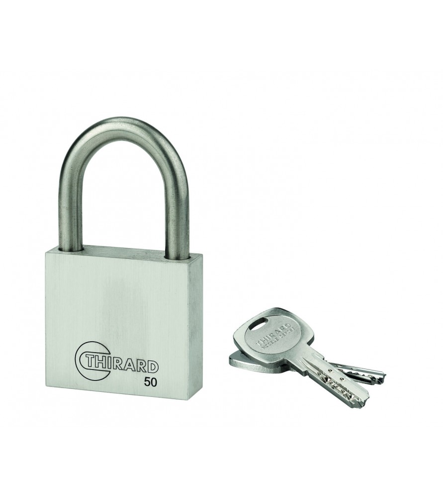 Jednoczęściowy korpus z mosiądzu. Wymienna niklowany kabłąk w stalowej obudowie. Mechanizm pinowy. Ochrona przed przewierceniem i wyrywaniem dzięki 2 bolcom z obrabianej stali. Podwójne zamknięcie z kulkami. Wymienna blokada bezpieczeństwa. 2 klucze.