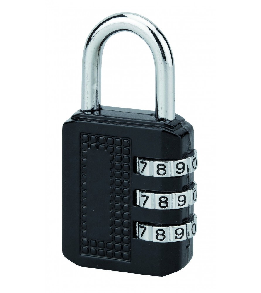 Korpus ze stopu odlewanego. Szekla ze stali niklowanej. Mechanizm 4 - cyfrowy. Możliwość modyfikacji kombinacji (10 000 możliwych kombinacji).