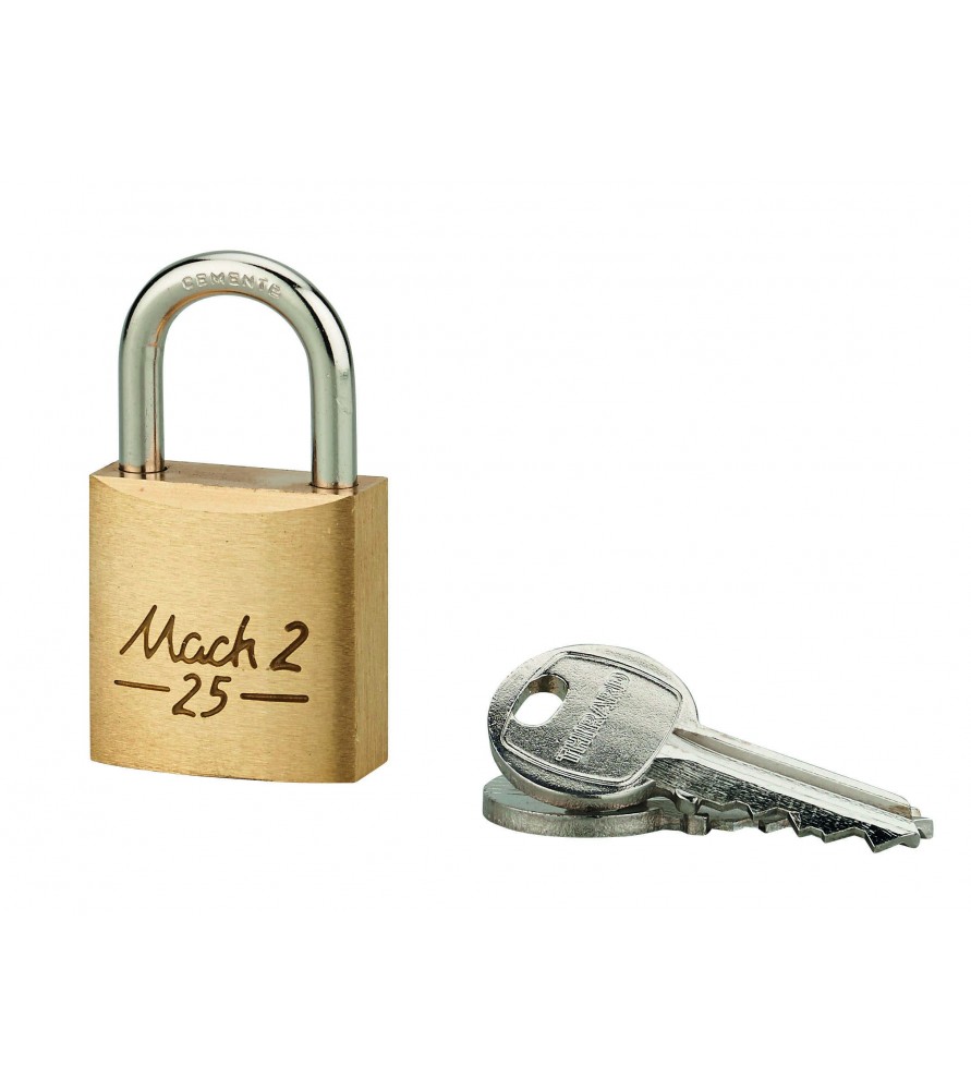 Lity mosiężny korpus. Kabłąk ze stali nawęglanej, niklowany. Zamek pinowy. Podwójne ryglowanie. 2 stalowe, niklowane klucze.