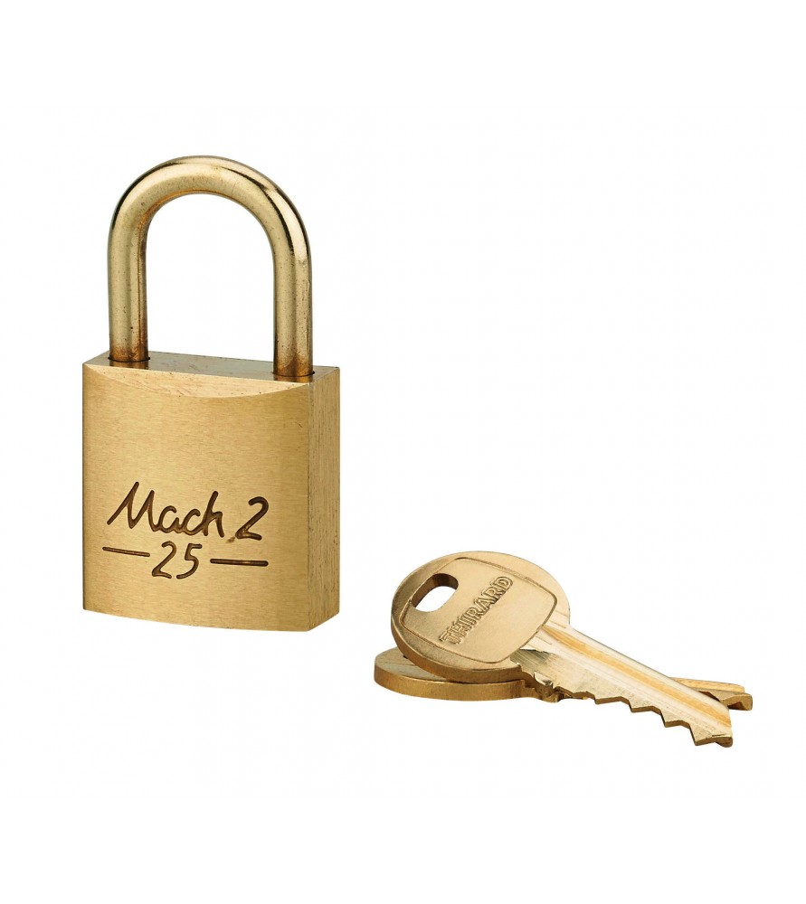 Jednoczęściowy korpus z mosiądzu. Stalowy uchwyt niklowany. Ochrona przed uszkodzeniem i zaczepieniem dzięki 2 stalowym bolcom. Prosta blokada. 2 klucze.