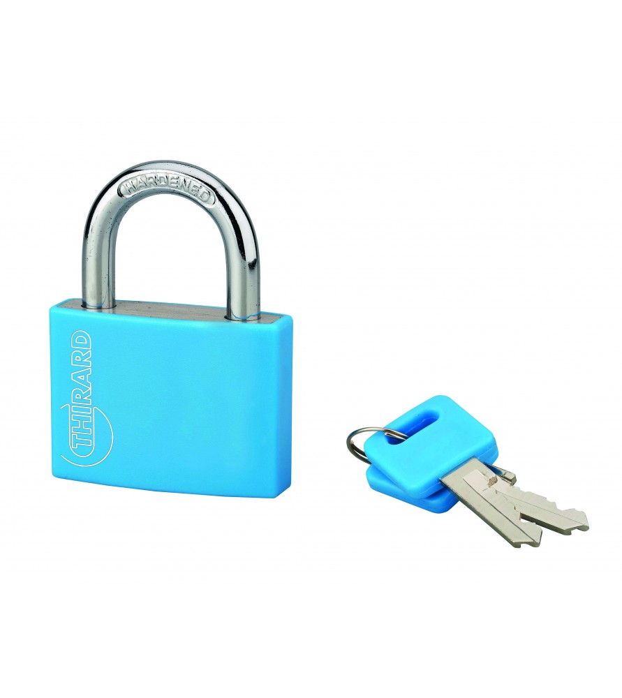 Lity mosiężny korpus. Kabłąk ze stali nawęglanej, niklowany. Zamek pinowy. Podwójne ryglowanie. 2 stalowe, niklowane klucze.