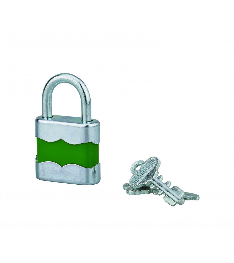 Kłódka szyfrowa do stosowania wewnątrz pomieszczeń. Kabłąk ze stali niklowanej na szyfr 3-cyfrowy ze zmienną kombinacją.