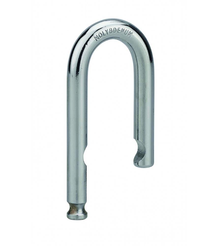 Korpus z litego mosiądzu z krytym kabłąkiem. kabłąk ze stali nawęglanej, niklowany. Podwójne ryglowanie. Zamek pinowy. 2 stalowe, niklowane klucze.