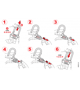 Korpus tłoczony ze stopu metali. Stalowy, niklowany kabłąk. 3-tarczowy zamek szyfrowy. możliwość zmiany szyfru, 1 000 kombinacji.