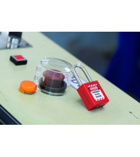 Korpus z polipropylenu nieprzewodzacy prądu, wykonanie dielektryczne. Odporny na wysoką i niską temperaturę, na ścieranie i na środki chemiczne. Blokowanie za pomocą kłódki. Do zaworów zakręcanych.