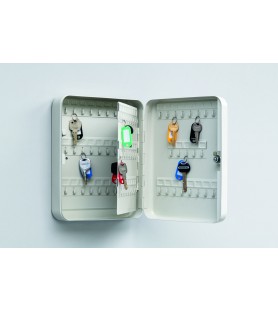 Praktyczna szafka na klucze z miejscem na 93 kluczy to idealne rozwiązanie do biur, hoteli, warsztatów czy domów. Wykonana z tłoczonej stali, zapewnia trwałość i odporność na codzienne użytkowanie. Wyposażona w stałe haczyki na klucze oraz dodatkową przegrodę ułatwiającą organizację. Mocowanie do ściany jest proste – w zestawie znajdują się akcesoria montażowe. Szafka wykończona została w eleganckim beżowym kolorze (epoxy), dzięki czemu estetycznie komponuje się w każdym wnętrzu. Solidna i funkcjonalna – idealna do bezpiecznego przechowywania kluczy.