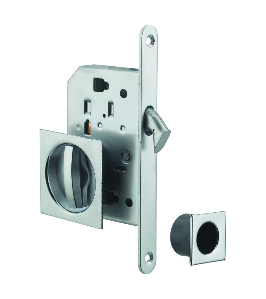 ZAMEK HAKOWY na klamkę do drzwi przesuwnych chrom satynowy | kwadratowe rozety -- WYCOFANY