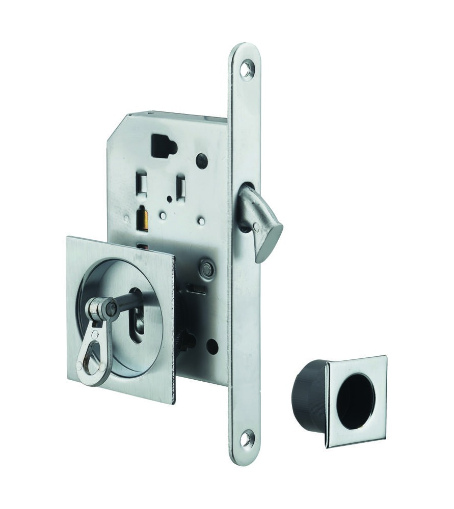 ZAMEK HAKOWY na klucz do drzwi przesuwnych chrom satynowy| kwadratowe rozety, 1 klucz -- WYCOFANY