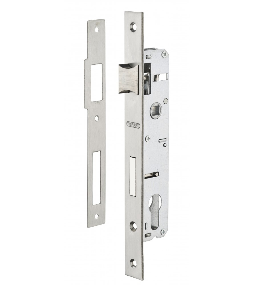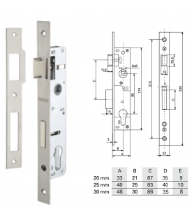Zamek do skrzynki na listy. Korpus odlewany ze stopu metali. Mechanizm dysków obrotowych. Płaska krzywka. 2 niklowane klucze w osłonie z PVC. Nakrętka i uchwyt mocujący.