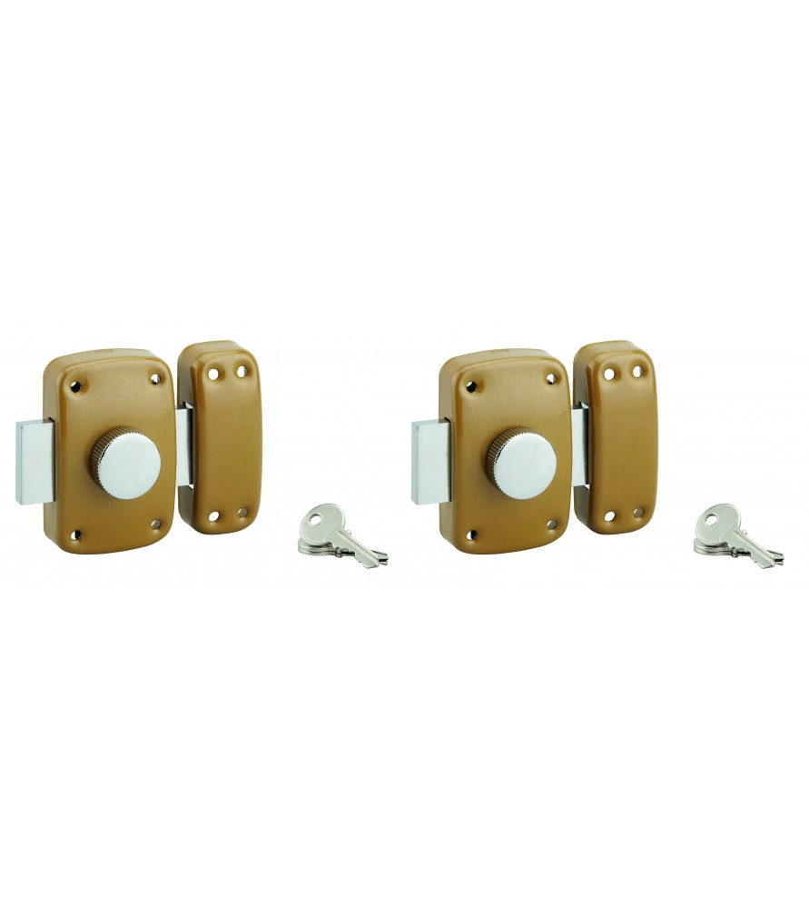 Szkielet obejmy i kasetki ze stali gietej ocynkowanej. Oslona kasetki i obejmy ze stopu metali. Zapadka ze stali chromowanej, satynowej. Galka z uchwytem z tworzywa ABS, chromowana, satynowa. Mosiezna wkladka bebenkowa 6-pinowa. Piny odporne na wytrychowanie.Pierwszy pin ze stali hartowanej zapewnia ochrone przed przewierceniem. Ochrona przed wyrwaniem wkladki dzieki zastosowaniu zawleczki sprezynowej i plytki. Mosiezny szyld. 4 mosiezne, niklowane plaskie klucze odwracalne z karta wlasciciela.