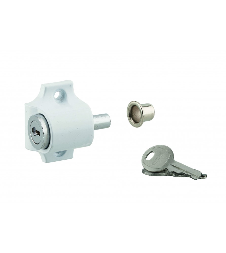 Zamek cylindryczny do drzwi przesuwnych rygiel dociskowy biały 2 klucze