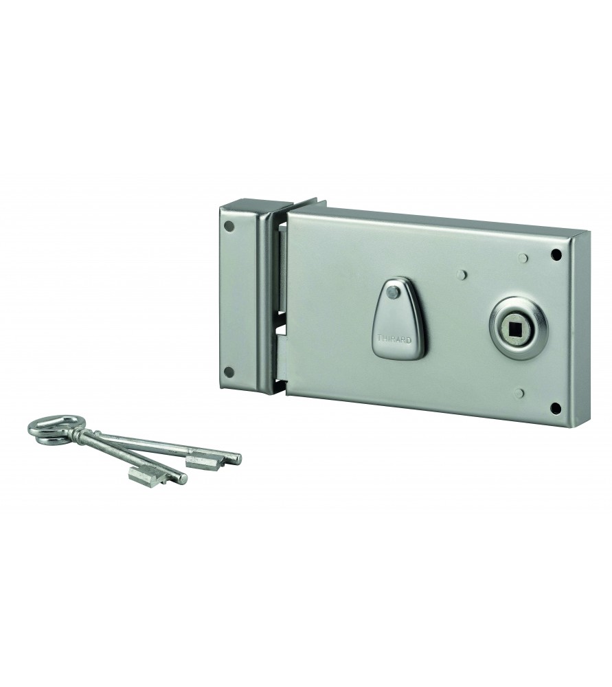 Korpus i zaczep z giętej stali. Rygiel i półrygiel stalowy. Cylinder stalowy długości 35 mm. Wejście klucza mosiężne w korpusie. Mechanizm dwuskrętny. Półrygiel odwracalny do drzwi otwieranych na zewnątrz. Trzpień 6 mm. 2 niklowane klucze, 6 kombinacji. Wejście klucza i trzpienia stalowe.